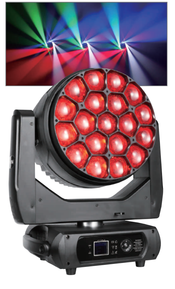 LED19顆15W旋轉(zhuǎn)大峰眼搖頭染色燈